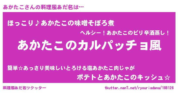 | 意味不明あだ名 | 『住所不定無職あかたこ(79歳)』 |