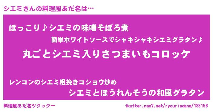 | ヒーロー風カッコイイあだ名 | 『仮面シエダー』『スーパーシエミ』 |