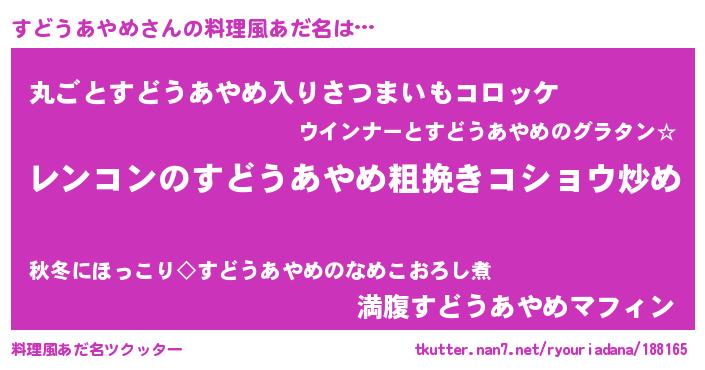 | 意味不明あだ名 | 『自称すどうあやめ』 |