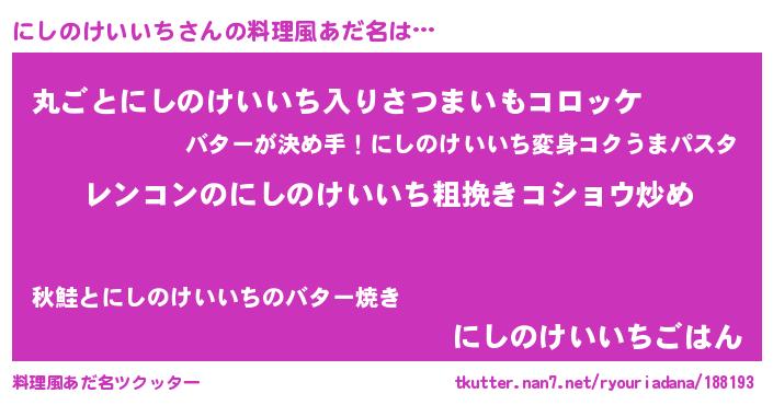 | 意味不明あだ名 | 『自称にしのけいいち』 |