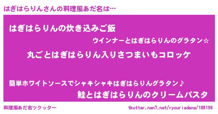 | 男性向けラノベタイトル風あだ名 | 『この素晴らしい世界にはぎはらりんを!』 |