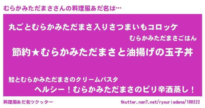 | 男性向けラノベタイトル風あだ名 | 『むらかみただまさの憂鬱』 |