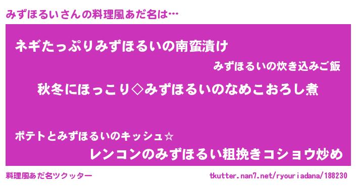 | ヘコむあだ名 | 『みずもー』『みずぷりん』 |