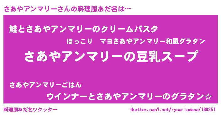 | 意味不明あだ名 | 『とにかく怪しいさあやアンマリー』 |