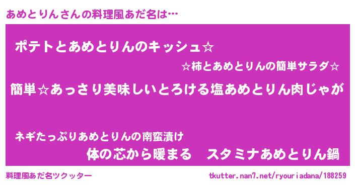 | 欧米人風あだ名 | 『ダルビッシュあめとりん』 |