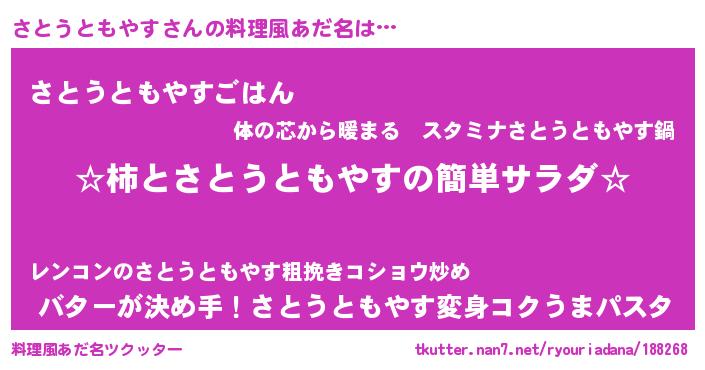 | 意味不明あだ名 | 『たけのこ科さとうともやす属』 |