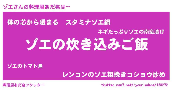 | ヘコむあだ名 | 『レバニラ』『ゾエふぇ~』『ゾエを』 |