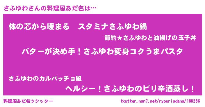 | 欧米人風あだ名 | 『ダニエルさふゆわ』『マイケルさふゆわ』 |