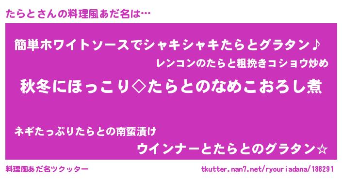 | 主人公(たらと)のあだ名『 たら殿』 |