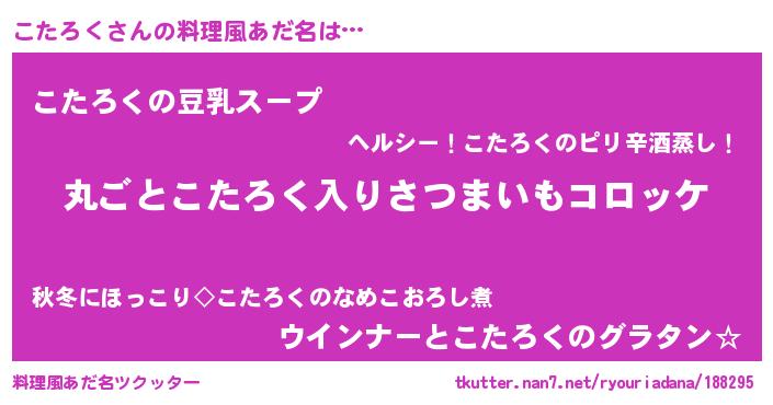 | 男性向けラノベタイトル風あだ名 | 『この素晴らしい世界にこたろくを!』 |