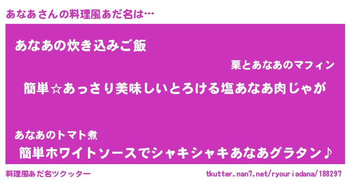 | ヘコむあだ名 | 『あなあ(笑)』『あなを』『レバニラ』 |
