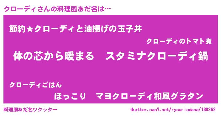 | 男性向けラノベタイトル風あだ名 | 『やはりクローディの青春ラブコメはまちがっている 』 |