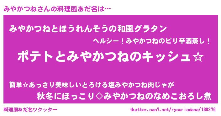 | ヘコむあだ名 | 『みやっ子』『みやかつね(小並感)』 |