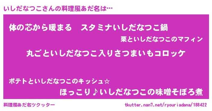 | ヘコむあだ名 | 『なまこ酢』『いしっふぃ~』 |