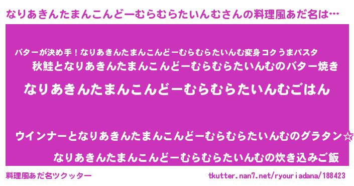 | 男性向けラノベタイトル風あだ名 | 『転生したらなりあきんたまんこんどーむらむらたいんむだった件』 |