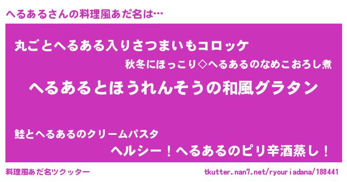 | 意味不明あだ名 | 『ヨモギ科へるある属』『自称へるある』 |