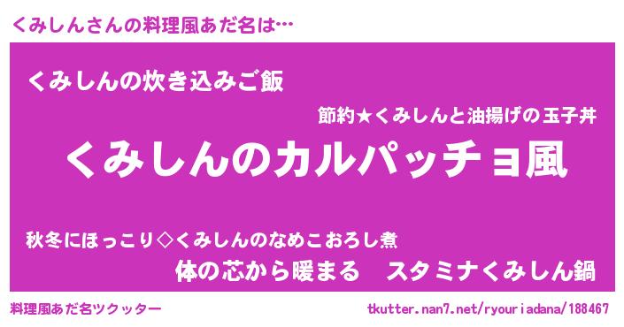 | 意味不明あだ名 | 『住所不定無職くみしん(5歳)』 |