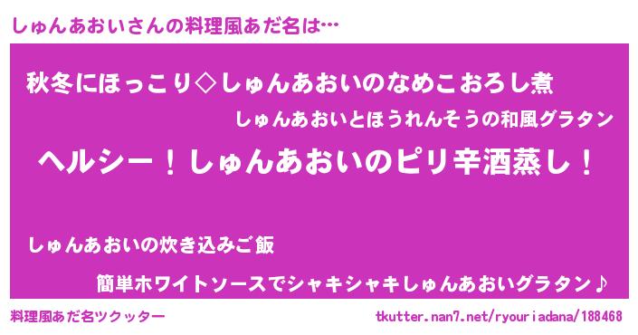| 胡散臭い通販商品みたいなあだ名 | 『テレビで話題のアガリクス…その名も「しゅんあおい」』 |