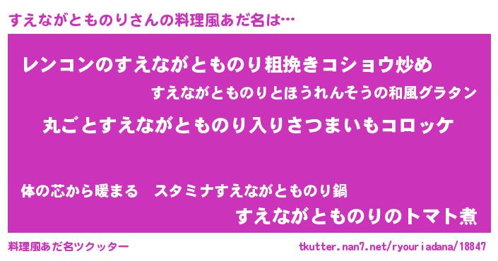 | 意味不明あだ名 | 『住所不定無職すえながとものり(77歳)』 |