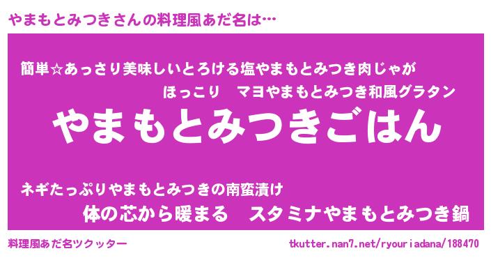 | 胡散臭い通販商品みたいなあだ名 | 『絶対に幸福をもたらす健康食品…その名も「やまもとみつき」』 |
