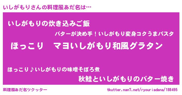 | ヘコむあだ名 | 『いしがもり(笑)』『いしもー』 |