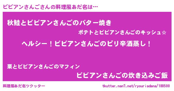 | 男性向けラノベタイトル風あだ名 | 『Re:ビビアンさんごから始める異世界生活』 |
