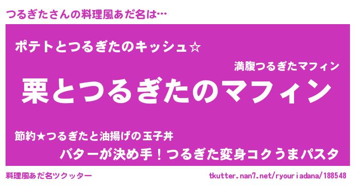 | 胡散臭い通販商品みたいなあだ名 | 『信頼と実績のサプリメント…その名も「つるぎた」』 |