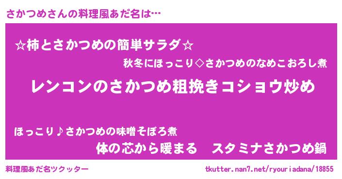 | 意味不明あだ名 | 『自称さかつめ』『さかつめフォーエバー』 |