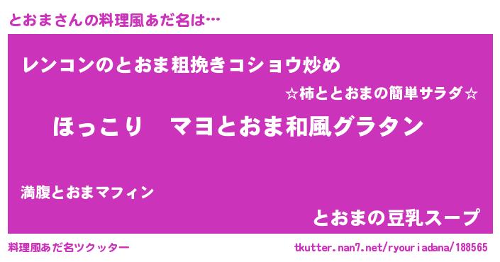 | 男性向けラノベタイトル風あだ名 | 『この素晴らしい世界にとおまを!』 |