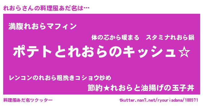| 女子向けラノベタイトル風あだ名 | 『れおらの卵を拾いまして』 |