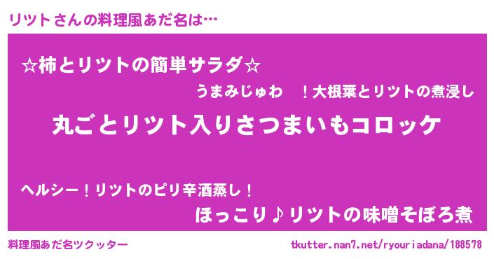 | 女子向けラノベタイトル風あだ名 | 『乙女ゲームの破滅フラグしかない悪役リツトに転生してしまった…』 |