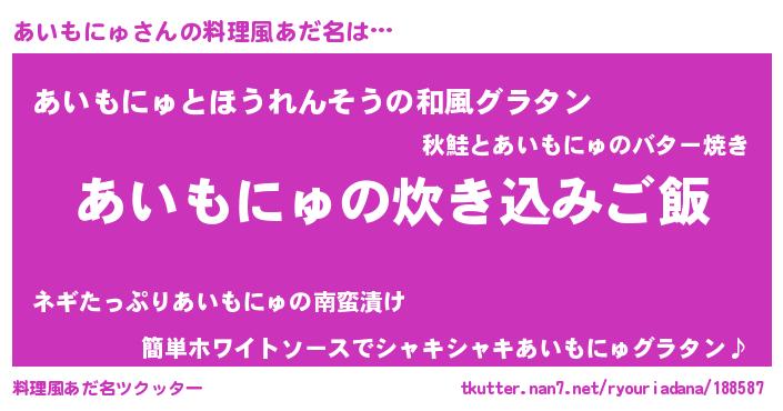 | 男性向けラノベタイトル風あだ名 | 『うちのあいもにゅが世界を掌握している!』 |