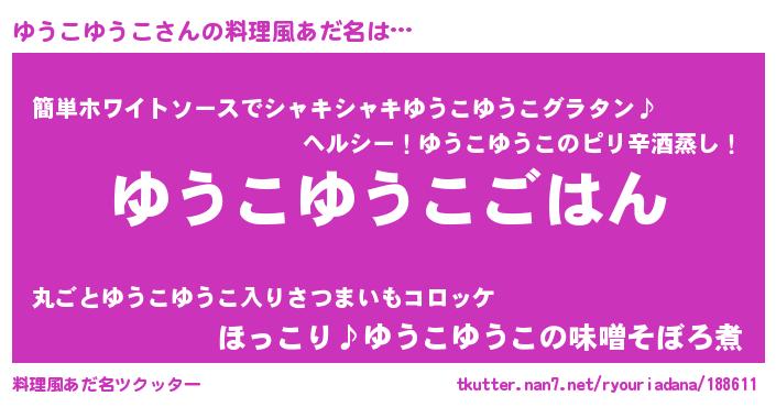 | 男性向けラノベタイトル風あだ名 | 『転生したらゆうこゆうこだった件』 |