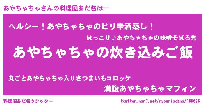 | 胡散臭い通販商品みたいなあだ名 | 『芸能人もオススメする高麗人参…その名も「あやちゃちゃ」』 |