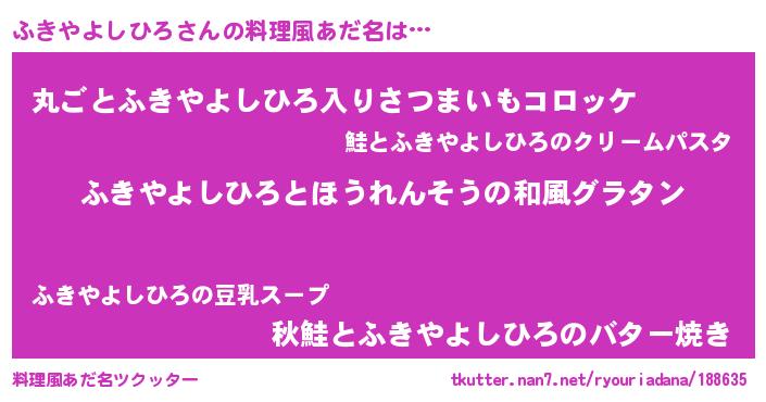 | ヘコむあだ名 | 『ふきやよしひろ(爆)』『ふきぷりん』 |