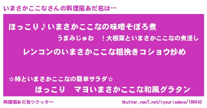 男性向けラノベタイトル風あだ名 | 『魔法科高校のいまさかここな』 |