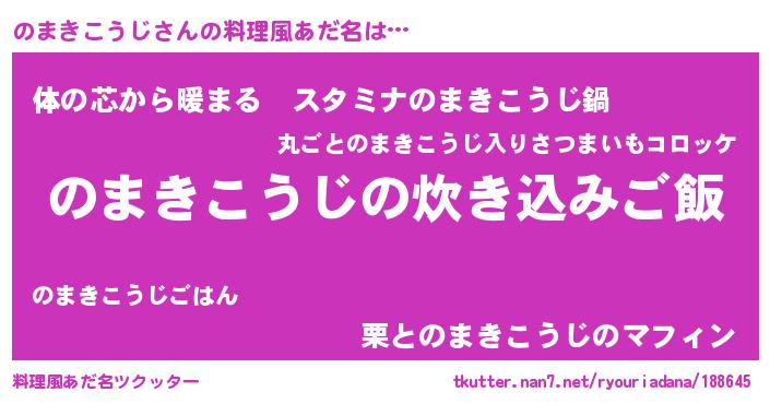 | ヘコむあだ名 | 『なまこ酢』『のまぷりん』 |