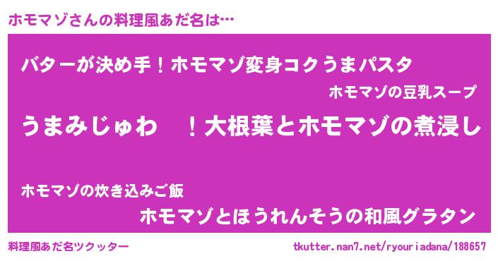 | 女子向けラノベタイトル風あだ名 | 『ホモマゾの婚約者』『ホモマゾ恋絵巻』 |