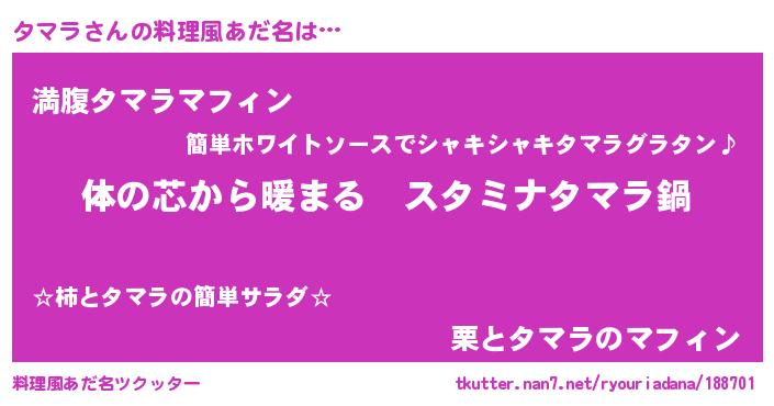 | 意味不明あだ名 | 『タマラフォーエバー』『永久保存タマラ』 |