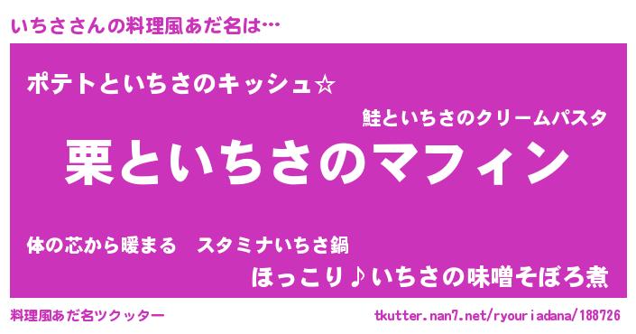 | 意味不明あだ名 | 『とにかく怪しいいちさ』 |