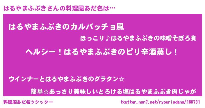 | 男性向けラノベタイトル風あだ名 | 『Re:はるやまふぶきから始める異世界生活』 |