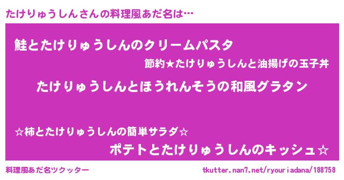 | 意味不明あだ名 | 『なめこ科たけりゅうしん属』 |