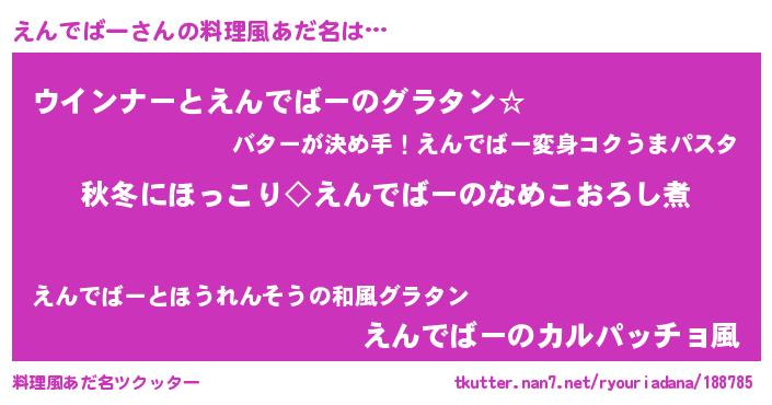 | ヘコむあだ名 | 『酢こんぶ』『えんでばー(震え声)』 |