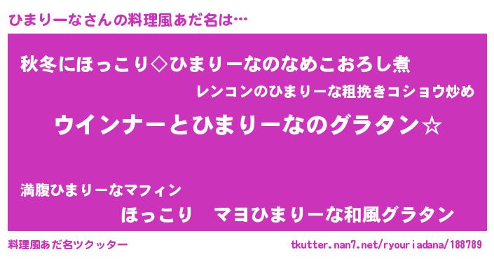 | ヘコむあだ名 | 『なまこ酢』『ひまりーな(笑)』 |