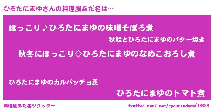 | 男性向けラノベタイトル風あだ名 | 『ひろたにまゆに滅ぼされるだけの簡単なお仕事です』 |