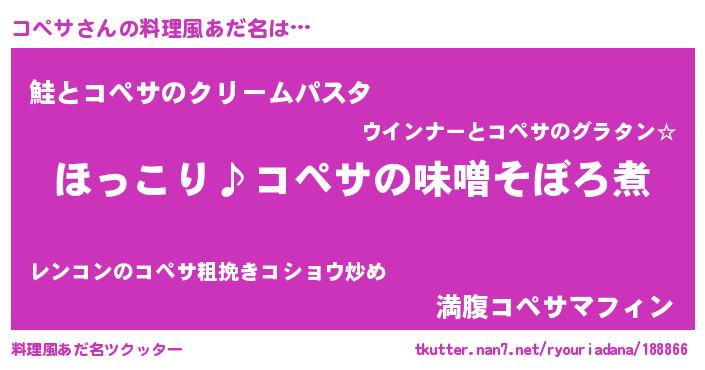 | ヘコむあだ名 | 『コペにゅー』『コペサ(笑)』 |