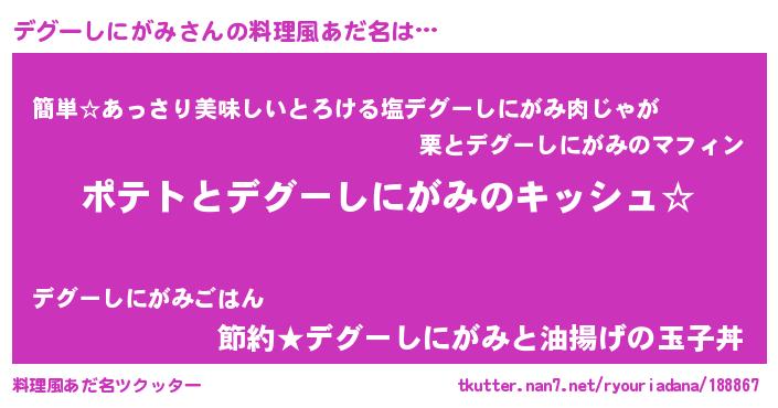 ヘコむあだ名 | 『デグっちょ』『デグーしにがみ(笑)』 |