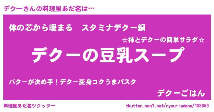 | 意味不明あだ名 | 『とにかく怪しいデクー』『自称デクー』 |