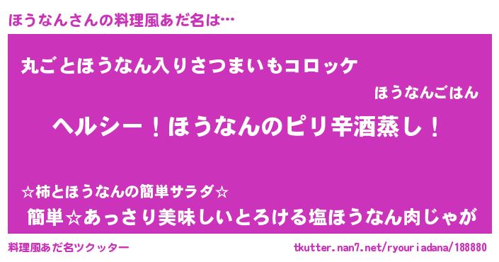 | 胡散臭い通販商品みたいなあだ名 | 『芸能人もオススメする高麗人参…その名も「ほうなん」』 |