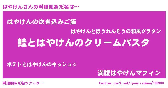 | ヒーロー風カッコイイあだ名 | 『慈愛の使者はやけん』『ネオハヤケン』 |